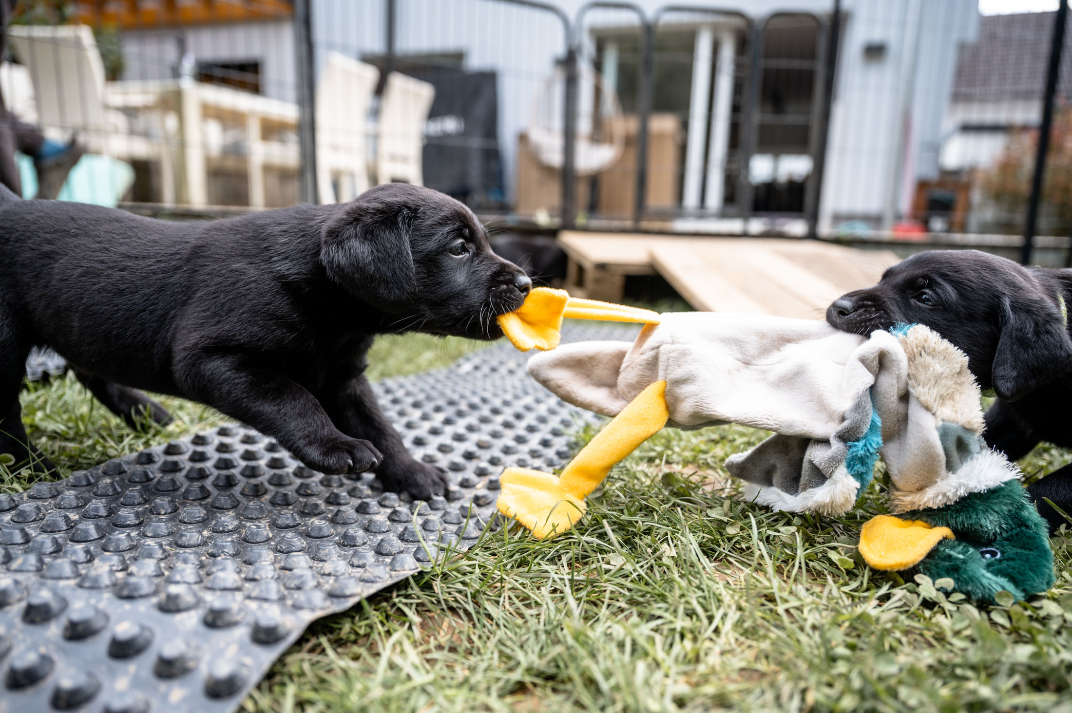 Luna je ponosna in skrbna mamica, mi pa smo hvaležni za to posebno izkušnjo in veselje, ki ga prinašajo novi labradorčki.Eden izmed mladičkov pa se je skotil kot angelček in bo za vedno ostal v naših srcih.